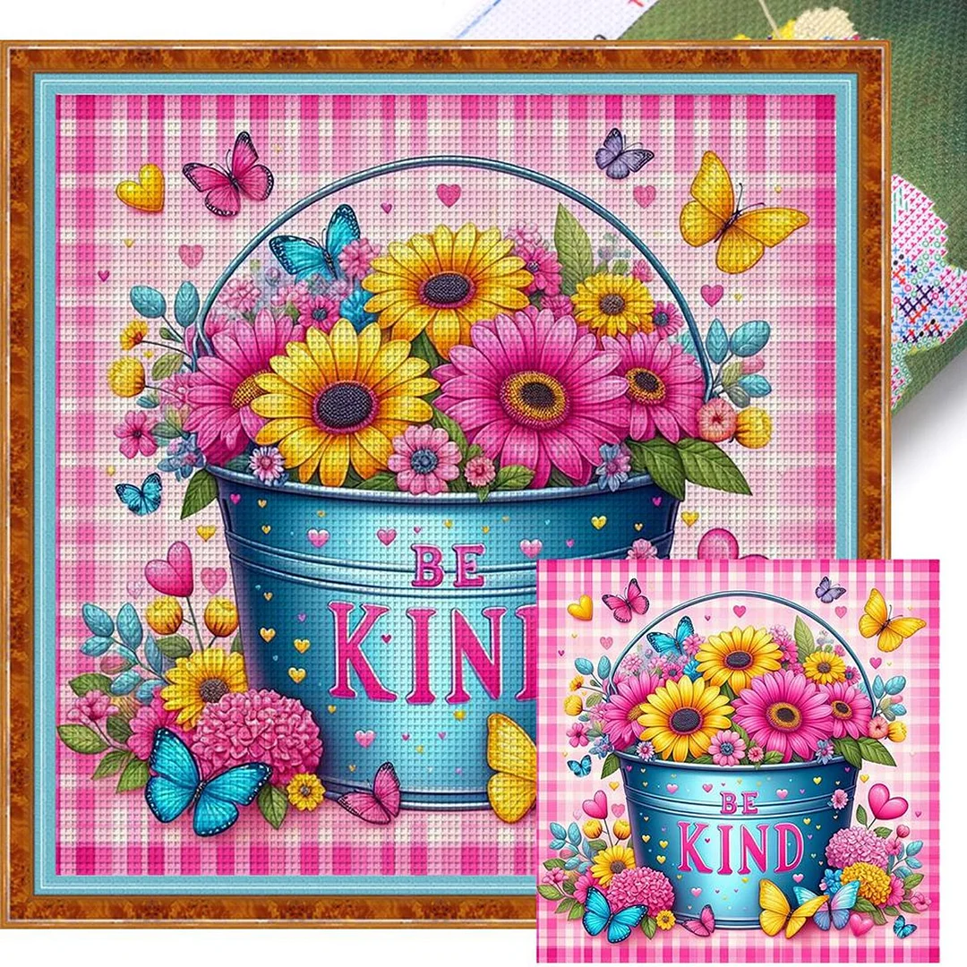 Butterflies and Flowers in a Bucket - 11CT Stamped Cross Stitch - 45*45cm