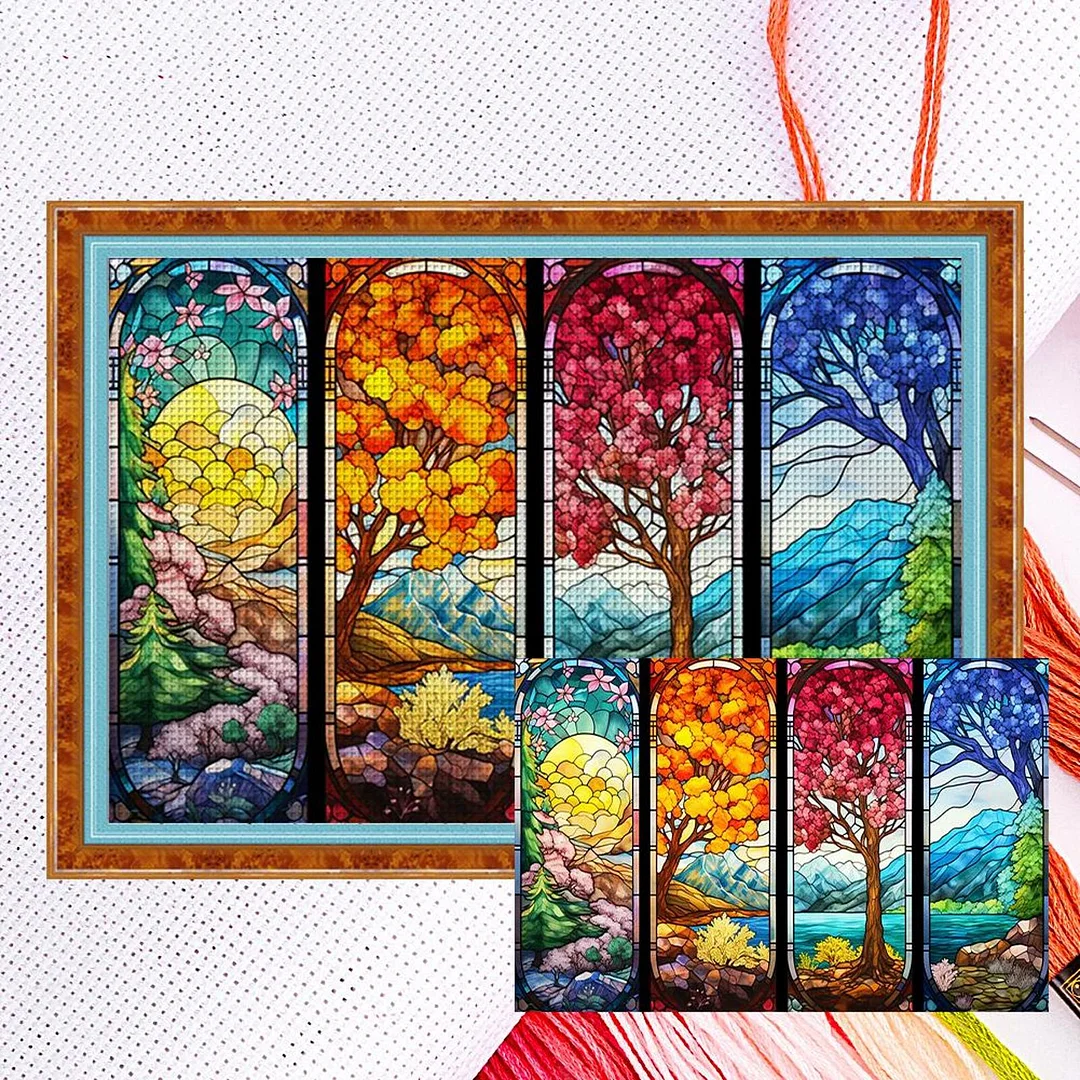 (Big Size)Glass Painting Four Seasons - 11CT Counted Cross Stitch - 60*40cm