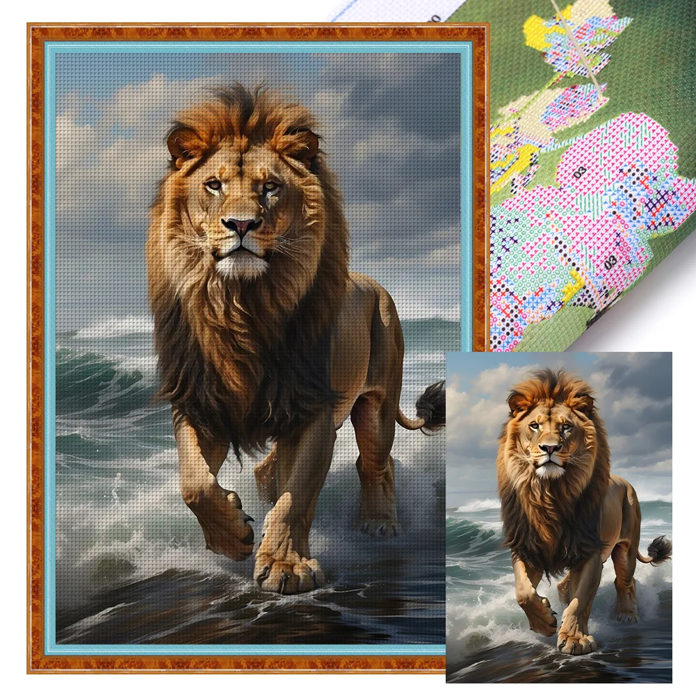 (Big Size)Lion - 11CT Stamped Cross Stitch - 40*60cm - Animal