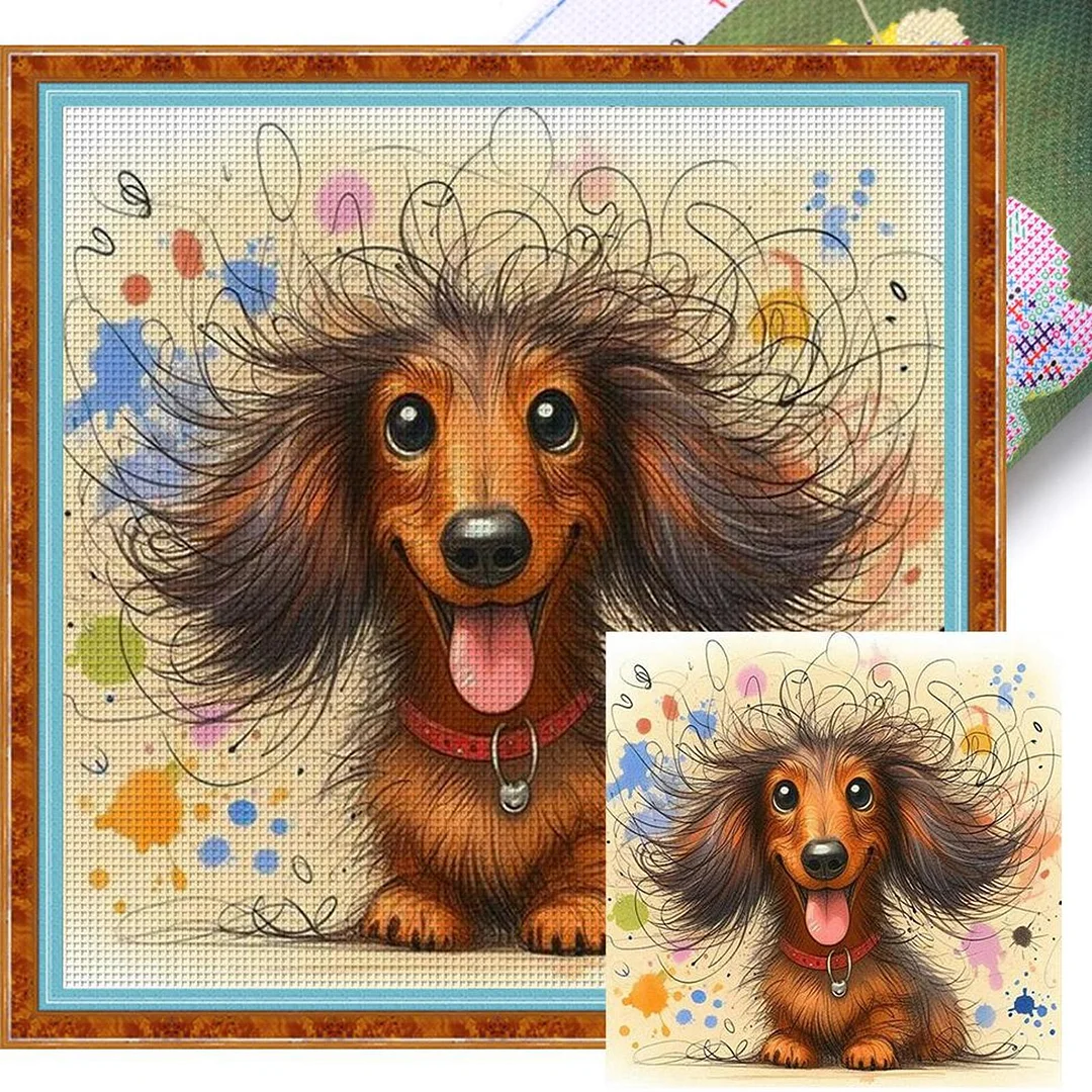 Colored Pencil Dachshund - 11CT Stamped Cross Stitch - 45*45cm - Dog