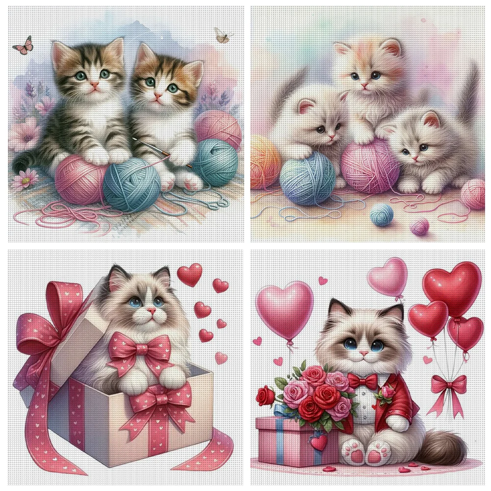 (Multi Style)Two Kittens Playing With Yarn-Full Embroidery 3 strands 11CT Stamped Cross Stitch-40*40CM