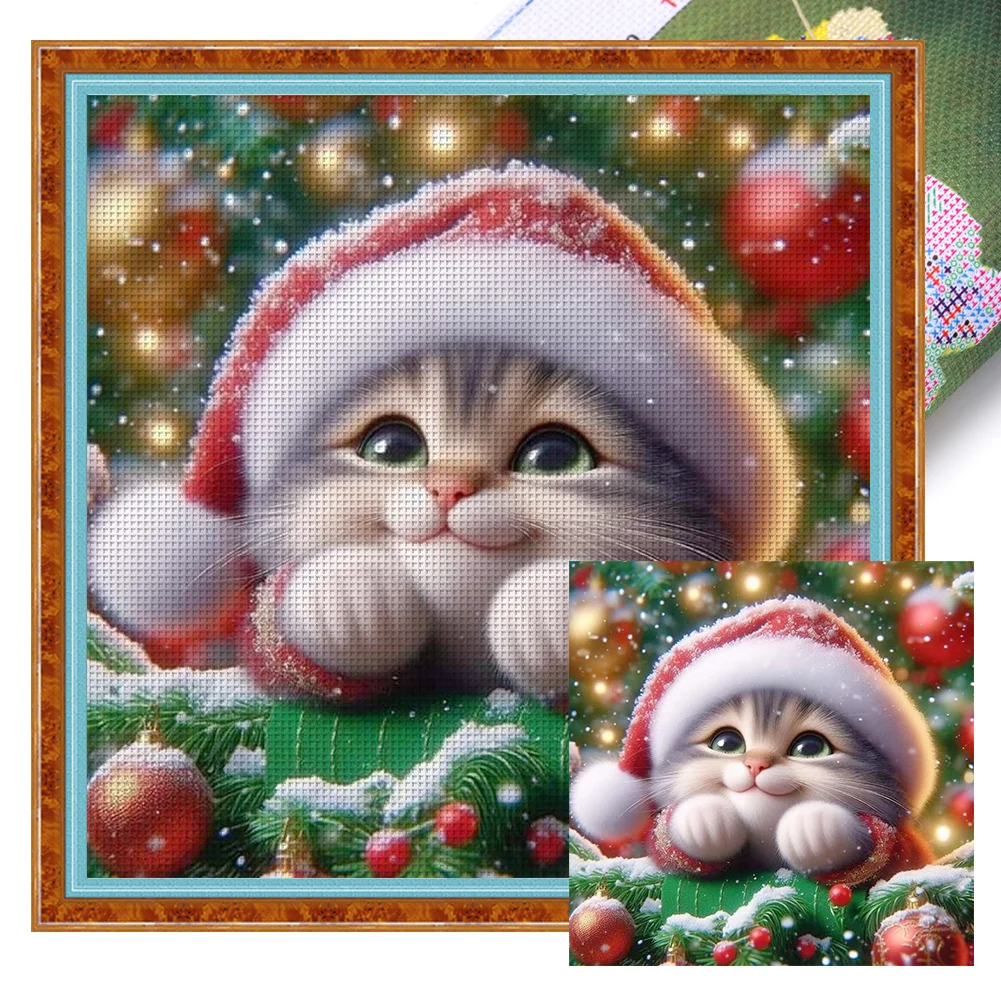 Christmas Kitten - 11CT Stamped Cross Stitch - 40*40cm - Cat Xmas