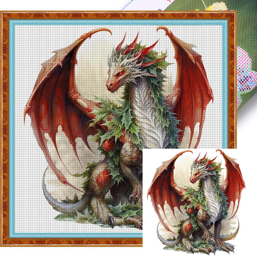 Christmas Pterosaur - 11CT Stamped Cross Stitch - 40*40cm - Dragon Xmas