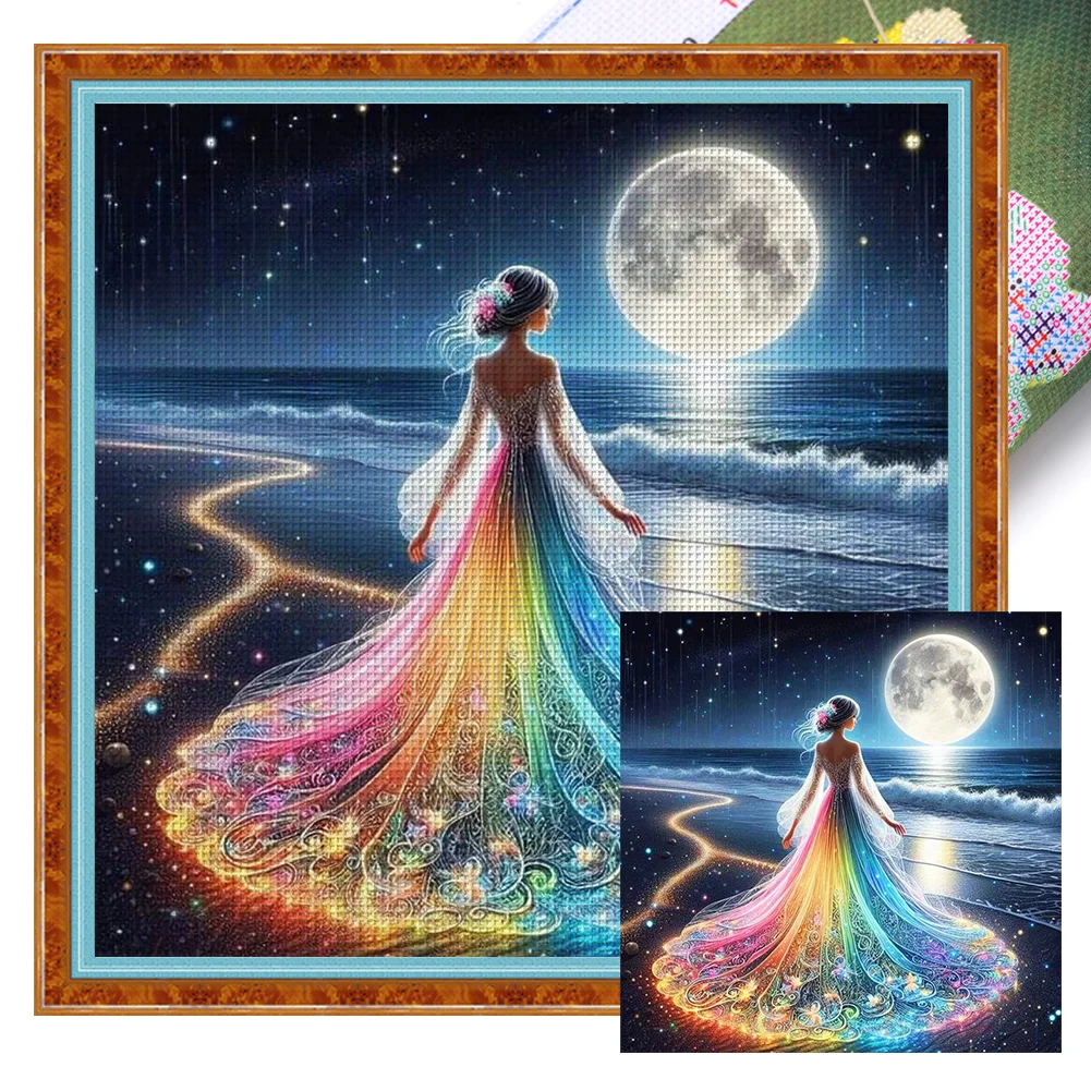 Beach Fluorescence Skirt Girl - 11CT Stamped Cross Stitch - 45*45cm