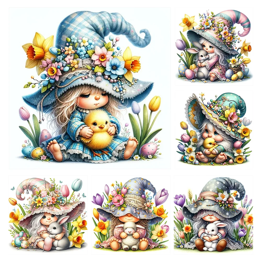 (Multi Style)Gnome Holding A Duckling-Full Embroidery 3 Strands 11CT Stamped Cross Stitch-50*50CM