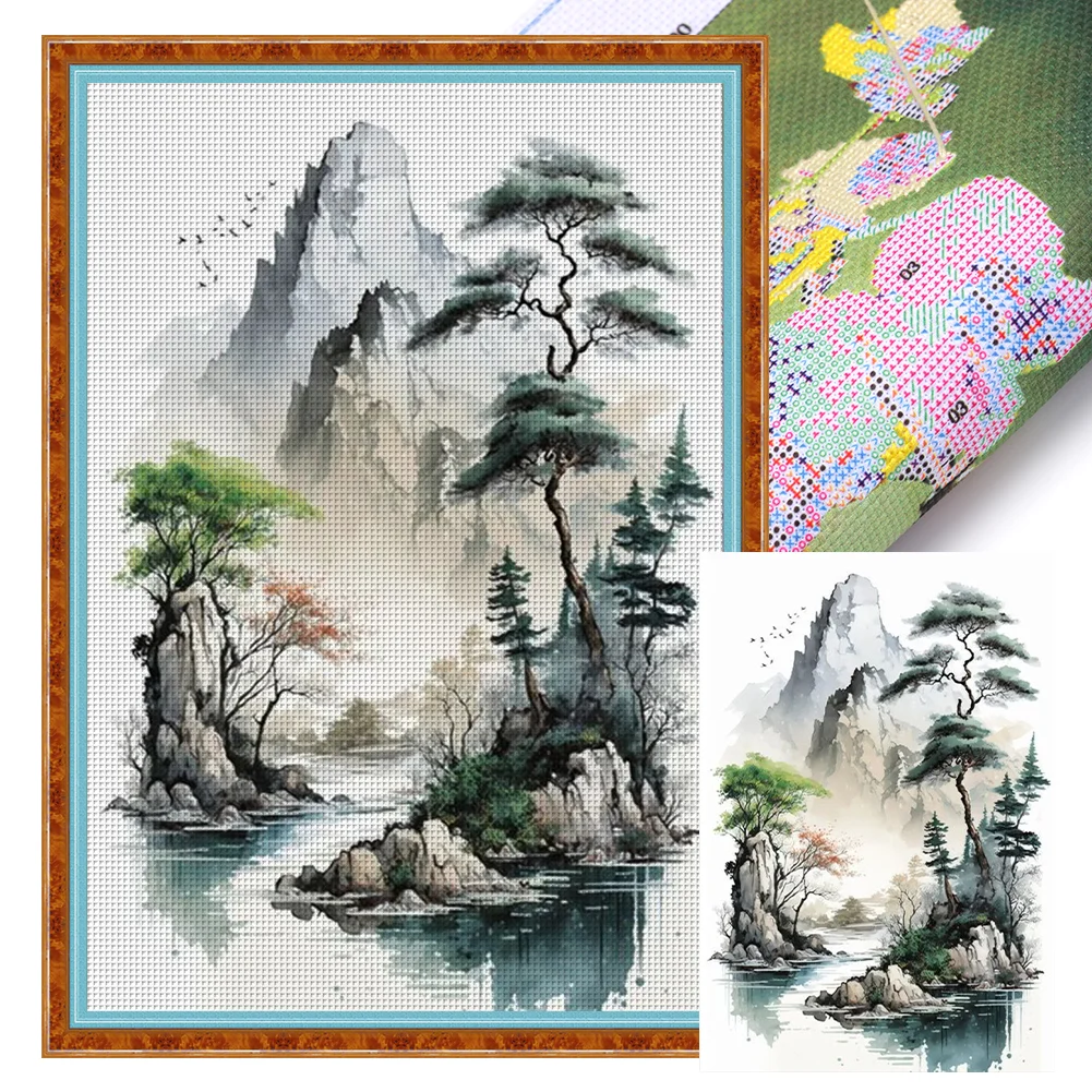 (Big Size)Ink Landscape Painting - 11CT Stamped Cross Stitch - 40*60cm - Natural