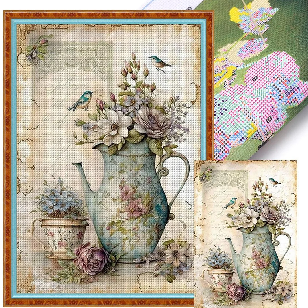 (Big Size)Vase And Bird - 11CT Stamped Cross Stitch - 40*60cm