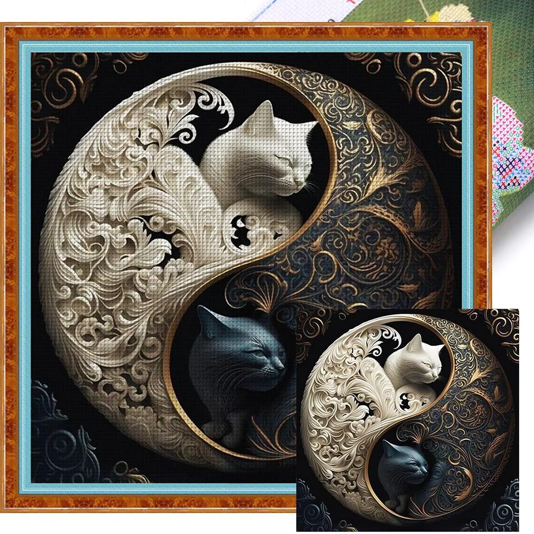 Tai Chi Yin Yang Black And White Cat - 11CT Stamped Cross Stitch - 45*45cm