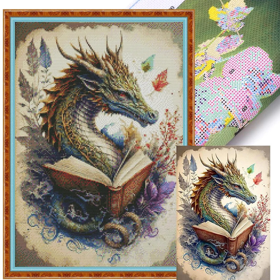 (Big Size)Dragon Reading Book - 11CT Stamped Cross Stitch - 40*60cm