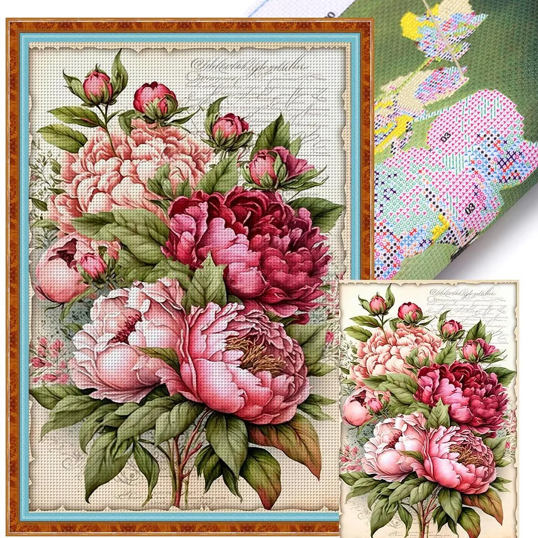 (Big Size)Peony Bouquet - 11CT Stamped Cross Stitch - 40*60cm - Flower