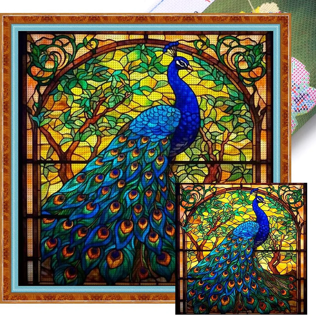Stained Glass Peacock - 14CT Stamped Cross Stitch - 40*40cm - Animal