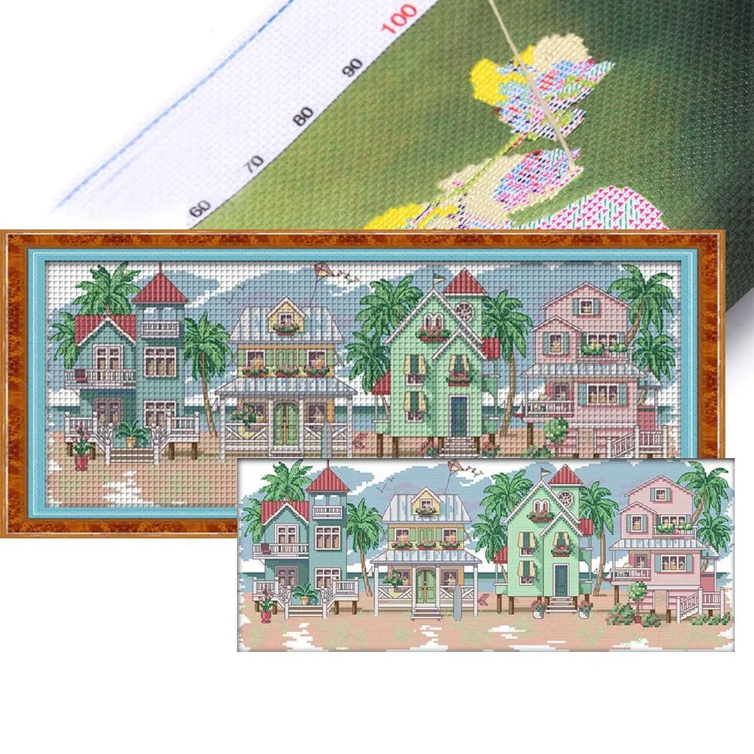 (Small Size)[Brand]Seaside Village - 14CT Stamped Cross Stitch - 54*21cm